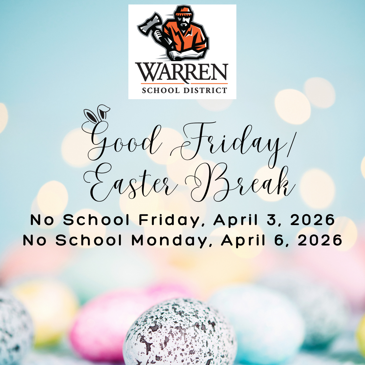 Good Friday/Easter BreakNo School Friday, April 3, 2026No School Monday, April 6, 2026