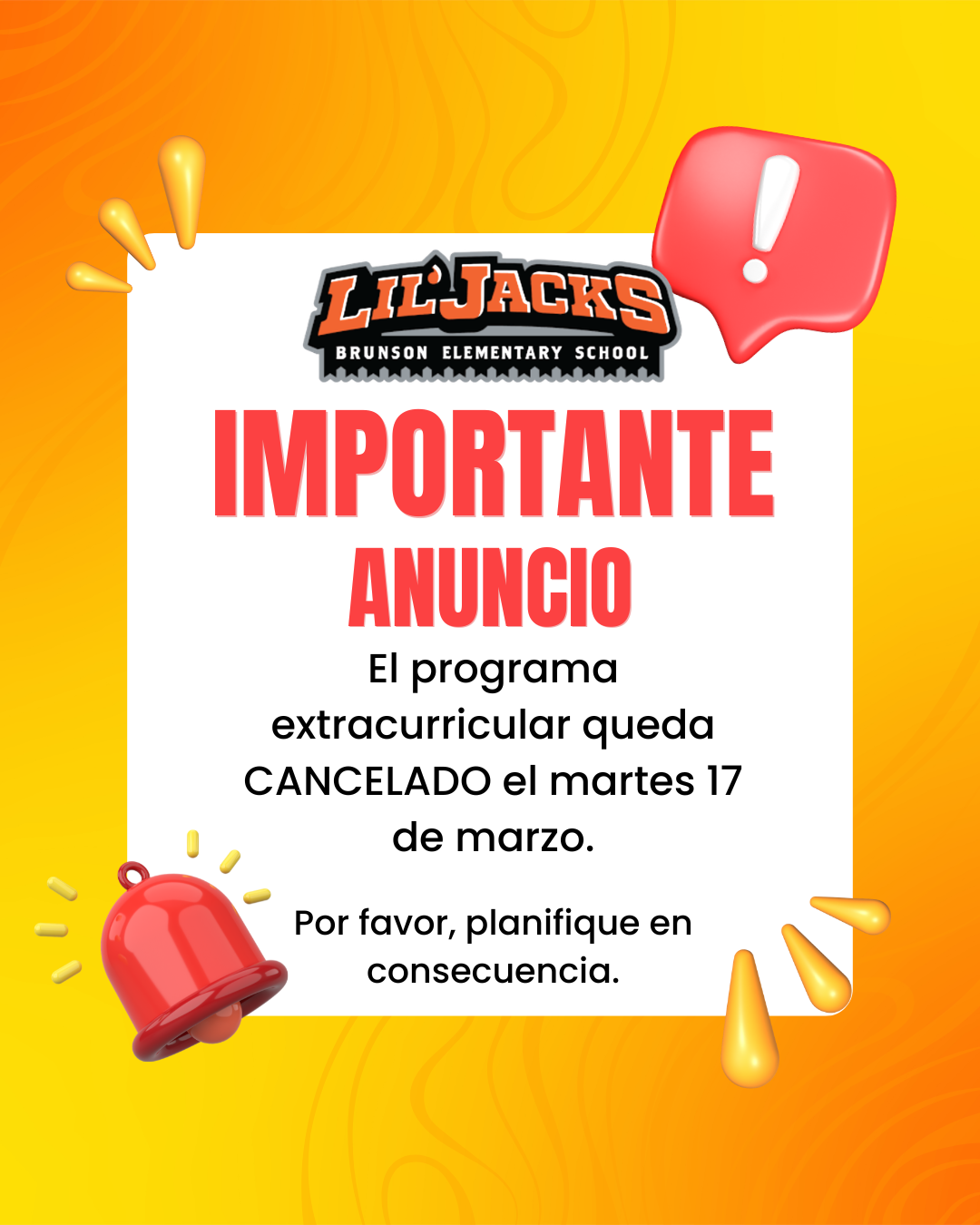 Brunson - After-School Cancelled 3/17